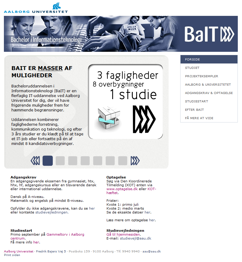 - Consistency with other Aalborg University sites (topbanner, navigation etc. dictated by university style guide)