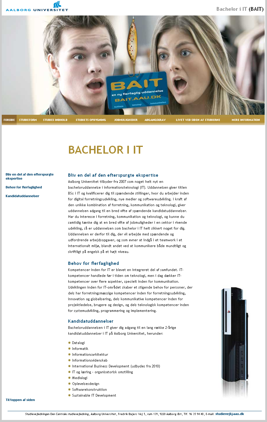 An official Aalborg University website for the line of study called "Bachelor in Information Technology" (BaIT).