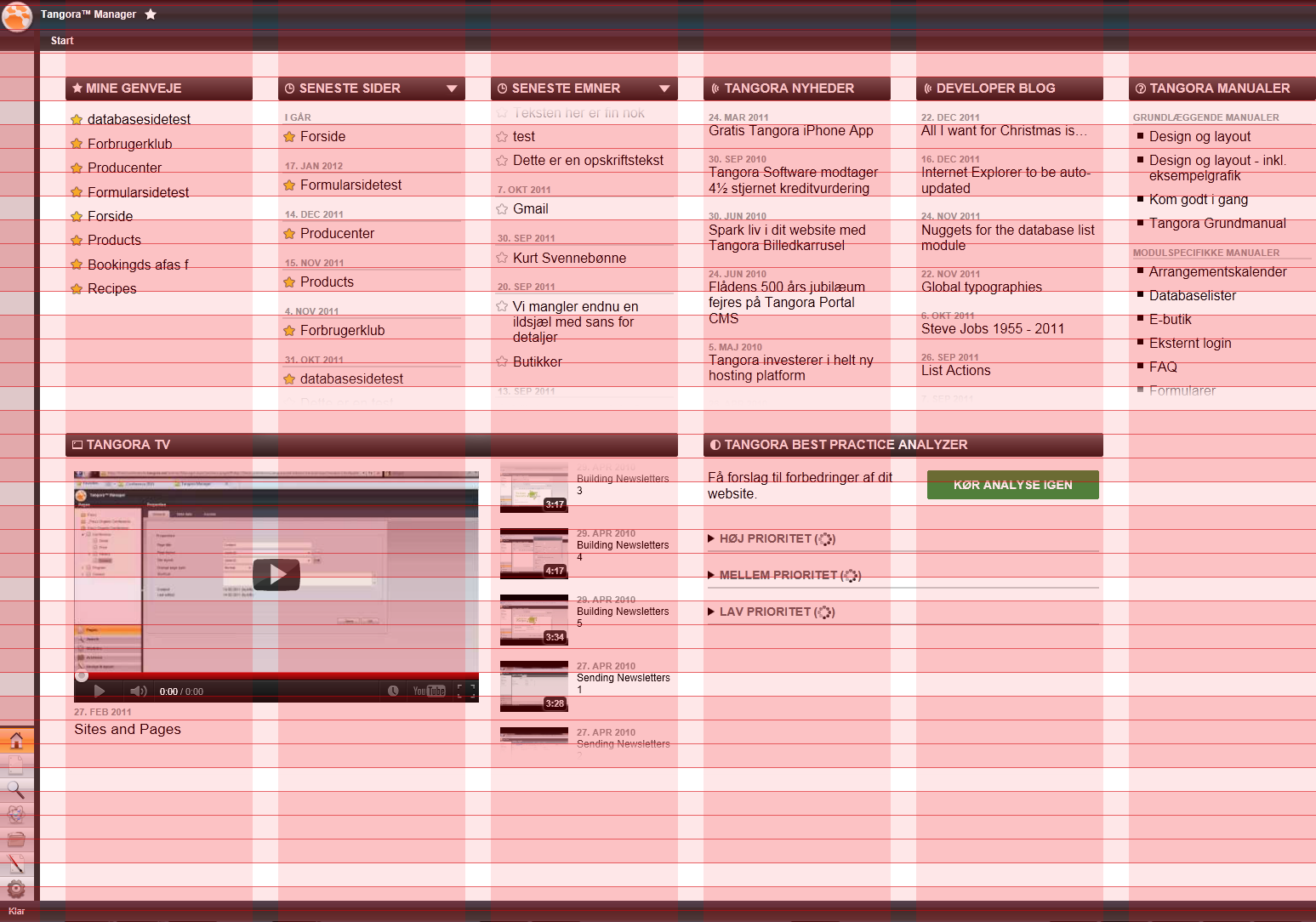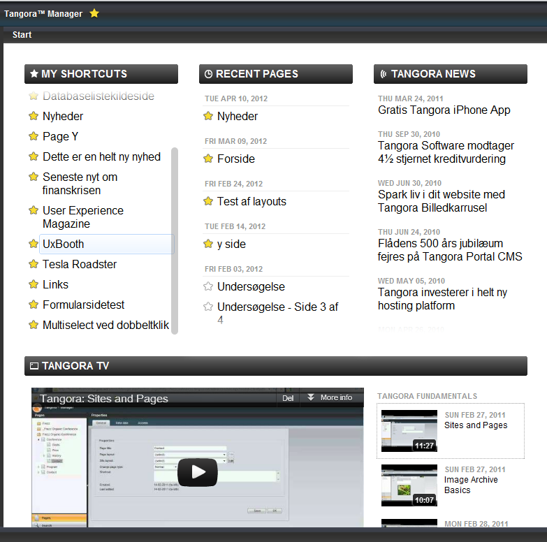 A brand new page helping users of Tangora CMS getting started.